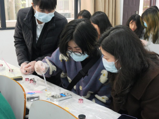 "三八"国际劳动妇女节口红DIY活动沐光启幕。校工会女工委员、院党委委员、副院长刘雪梅,副院长李志榕亲临现场,与女职工共赴这场色彩盛宴,共同见证“破茧”时刻。