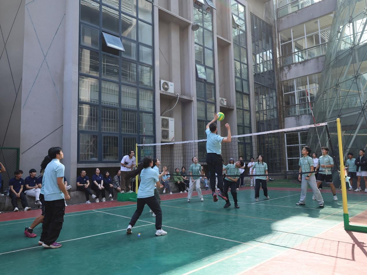 伴随着激昂的旋律,各参赛队伍步伐矫健、口号嘹亮,高举创意队牌依次登场,元气满满的状态成为春日校园里一道亮丽风景线。赛前,强俊老师结合体重管理年倡导的科学运动理念,细致讲解比赛规则与安全事项,强调在享受竞技乐趣的同时,更要以规律运动守护身体健康。简短的热身环节中,师生们舒展筋骨、跃跃欲试,排球场上的跃动身影,正是对健康体重,从主动运动开始的生动诠释。