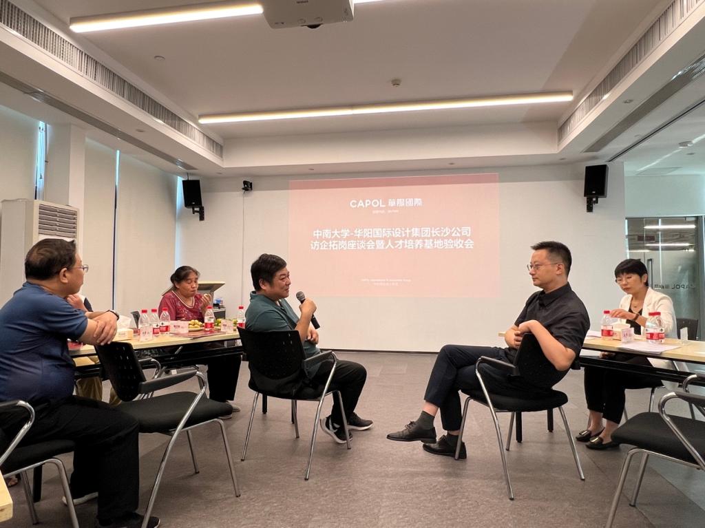 8月19日上午,学院院长石磊教授一行前往华阳国际长沙公司开展专题工作调研并开展实践教育基地验收,学院党委书记柯朝晖、学校验收组成员李满春、陈立新、邓超、欧阳松桃等教授,副院长解明镜 、实验中心主任赵明桥、辅导员巫建辉、李卉淼;华阳国际集团副总裁、长沙公司总建筑师范宏,长沙公司总经理、江西公司董事长姜振洋,长沙公司副总经理田伟、毛世清以及熟女