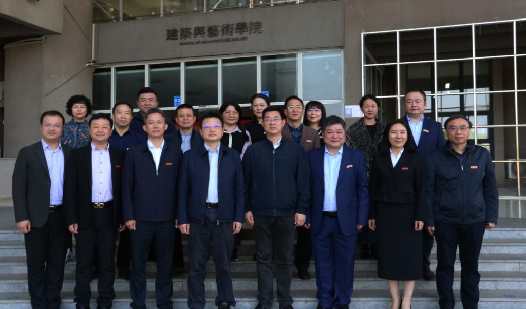 调研座谈结束后,校长李建成、校党委副书记付刚华与学院领导班子、专业系主任、党支部书记和青年教师代表在艺术楼前合影留念。
