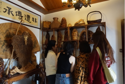 学生们在参观竹雕作品