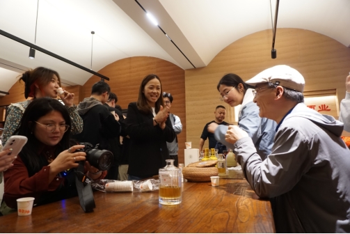 在酒窖里品尝麻姑井糯米黄酒,集体开启“微醺模式”