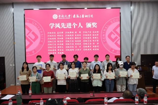 会议伊始,陈乐凯老师为本次表彰大会致开幕词。随后,建筑城规类2021、2022级本科生辅导员王梓懿老师宣读了获奖名单,获得学风建设先进班集体、学风建设先进个人及标兵,英语过级先进班集体、英语过级先进个人及标兵的集体和个人依次上台领奖。