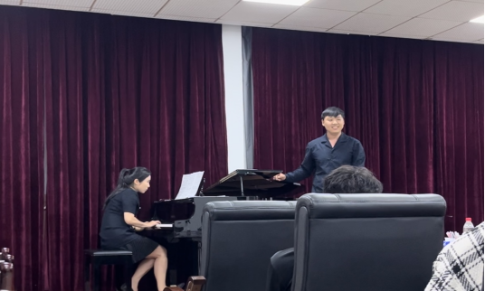 在场的同学们对刘超校友的学习经历感叹万千。争先恐后的提了很多专业上的问题。如何准备语言、声乐作品,出国之后心态的调整,国际生和计划生的选择等等,刘超校友一一耐心的进行了讲解。刘超校友鼓励同学们,每个阶段需要给自己一个定位,学习声乐要稳扎稳打,不要急功近利。活动的最后刘超校友为师生们演唱了三首不同语言的咏叹调,分别是Come Paride Vezzoso(选自歌剧《爱之甘醇》) 、O du mein Holder Abendstern(选自歌剧《唐豪瑟》)以及De l'art splendeur immortelle(选自歌剧《Benvenuto》)