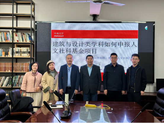 名师名家论坛特邀广州大学曹伟教授在天心校区第二综合楼203图书室举行《建筑与设计类学科如何申报人文社科基金项目——国社科、教育部人文社科为例》《土建类专业当下•现状•挑战•破局•出路》主题讲座。解明镜副院长主持报告会,建筑系和城乡规划系师生参加报告会。