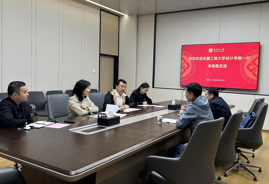 2024年4月11日,安徽工程大学设计学院常务副院长张学东、院长助理钱涛一行来访熟女 ,双方围绕学院学科建设、研究生培养、科研平台及实验室建设等方面展开深入交流。熟女 徐鸣副院长、刘雪梅副院长、业务办丁蕾老师、实验中心刘少博老师参加座谈。